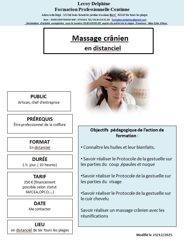 Organisme de formation enregistré sous le n° 83830450583 Préfet PACA Cet enregistrement ne vaut pas agrément de l’État formati[email protected] 06.83.64.01.96